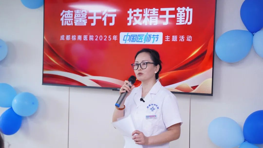 活动伊始,四川省中医药信息学会王笳会长发表了热情洋溢的讲话。“非常荣幸与在座各位辛勤奉献的医师同仁们共庆这个属于我们自己的光荣节日......”王会长高度肯定了成都棕南医院医师团队在守护群众健康方面做出的积极贡献,强调了医师职业在医疗卫生事业发展中的核心地位,并鼓励全体医师继续秉持医者仁心,以专业能力和人文关怀服务患者,为推动行业进步贡献力量。